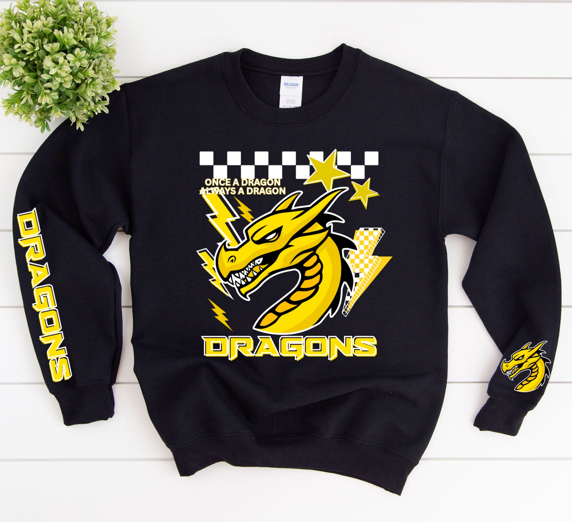 DTF/Direct to Film Transfers: these are ink that is printed onto a clear film and then transfered on top of the shirt when pressed. Similar to a screen print. This can be on any color garment.